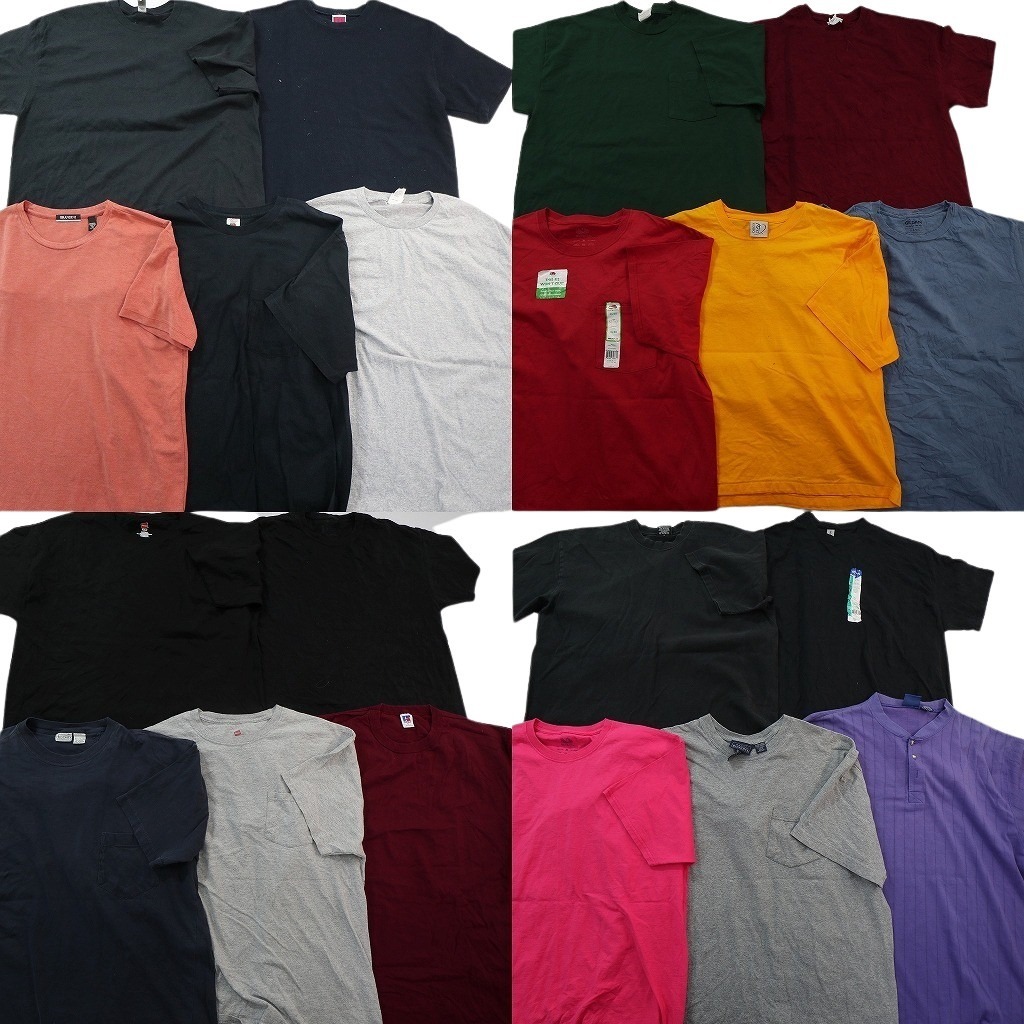 - 古着卸 まとめ売り 無地 Tシャツ 20枚セット ( メンズ XL ) ヘンリーネック ラッセル ヘインズ デッドストック NE3497 1円スタート