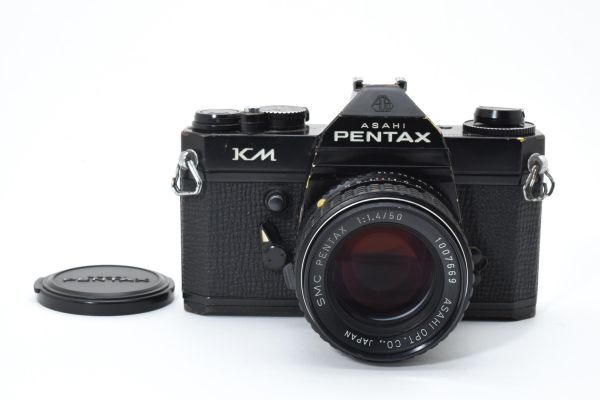 > 758-60 Asahi Pentax KM SMC Pentax 50mm 1:1.4 MF Standard Lens ブラック 単焦点レンズ付 MFフィルム一眼レフカメラ ペンタックス 現状品