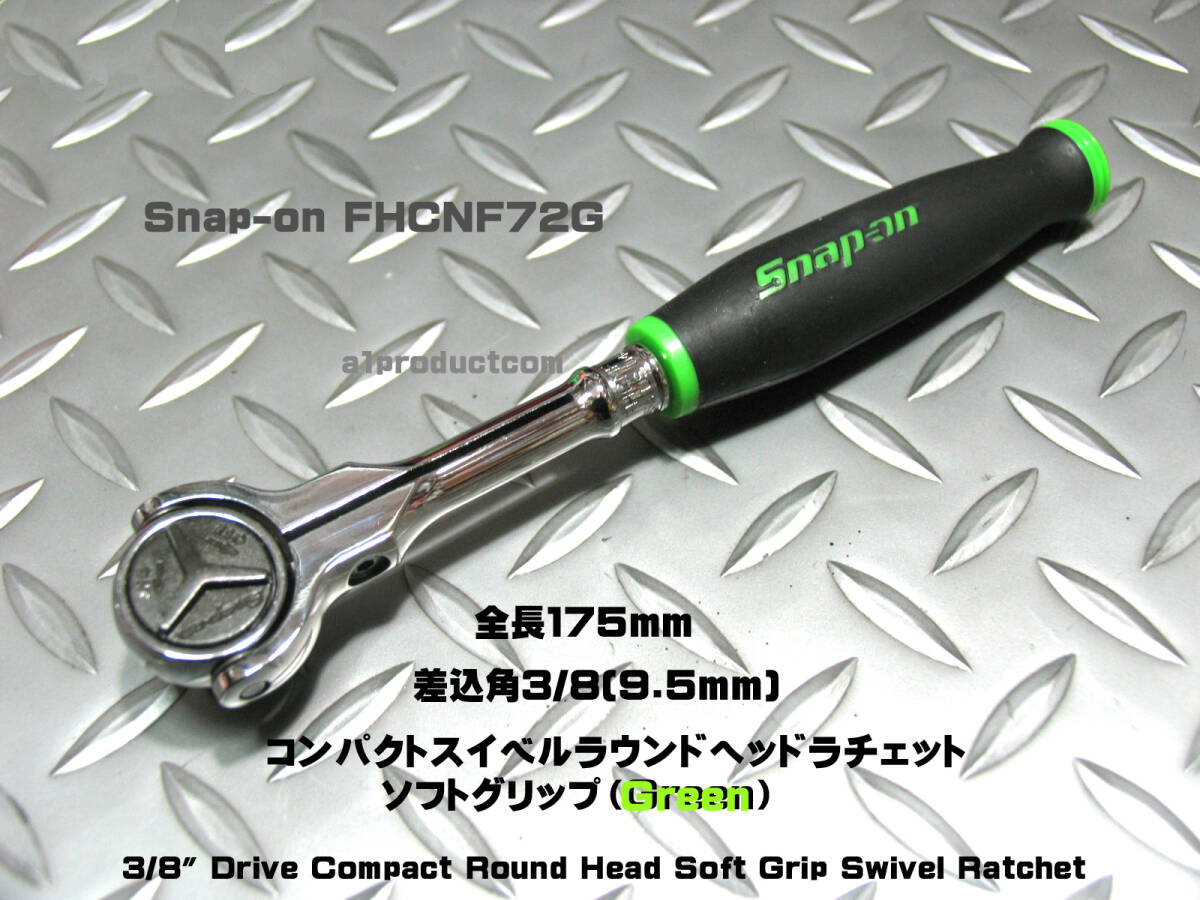 > スナップオン Snap-on 差込角3/8(9,5mm) コンパクト スイベルラウンドヘッドラチェット FHCNF72G(グリーン) 新品