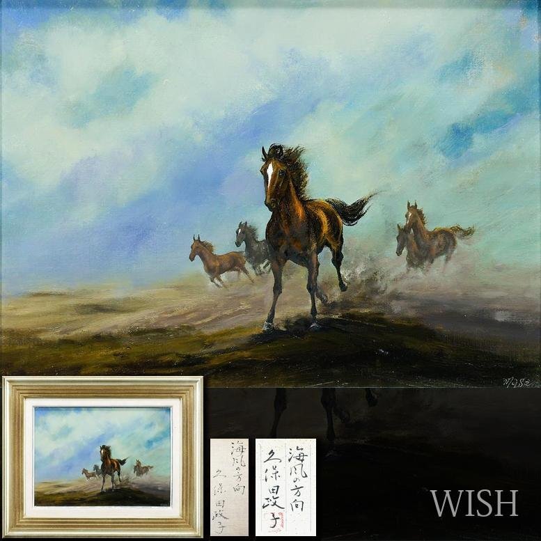 - 【真作】【WISH】久保田政子「海風の方向」油彩 4号 共シール ◆風を駆ける馬の躍動 〇馬の画家 無所属 元女流画家協会員 #26033131