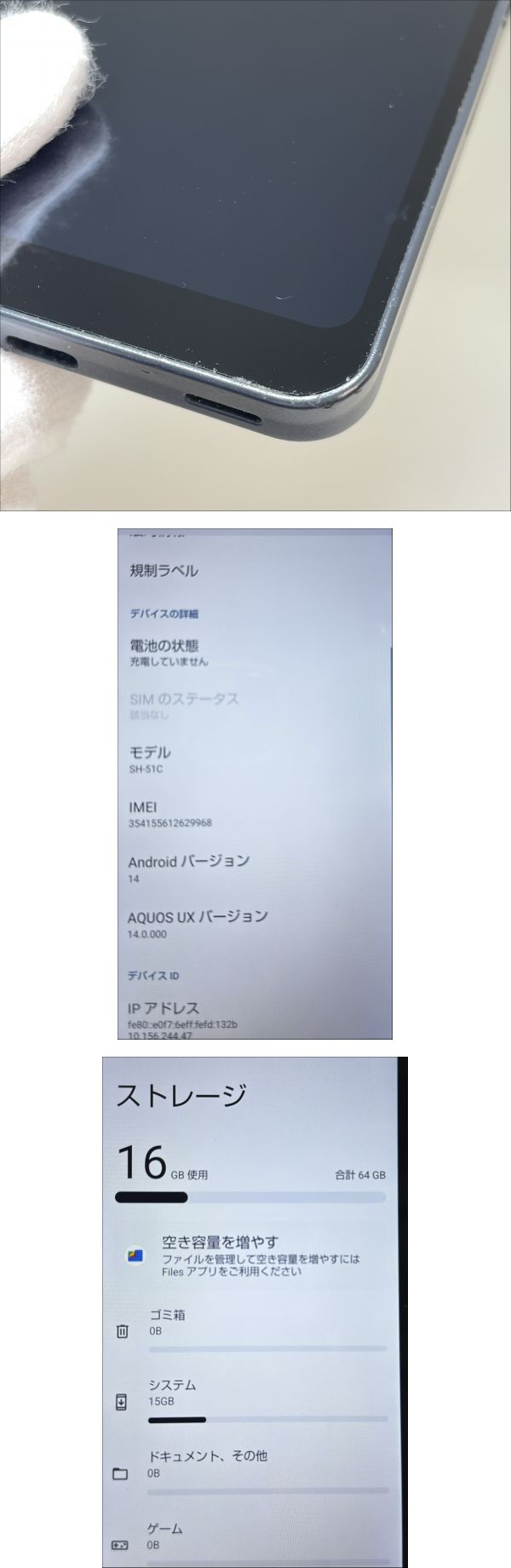 > 2603M4219 SHARP シャープ AQUOS wish2 SH-51C 64GB IMEI:docomo:〇判定 SIMフリー 通電確認済