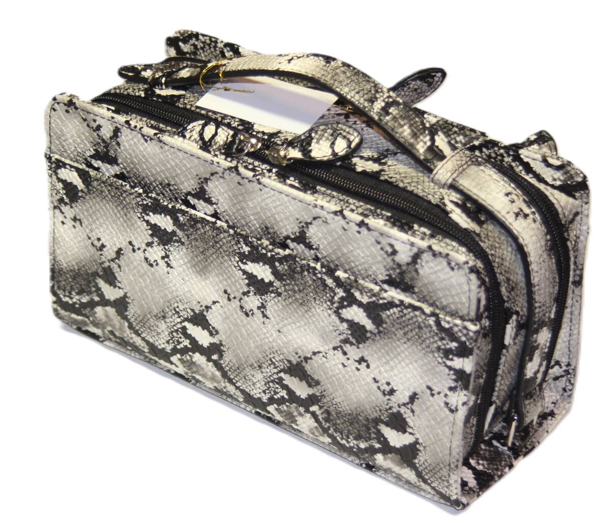 - 【新生活応援特別タイムセール】【送料込み】【限定】【新品】【税込み】リアルパイソン型押し☆Wファスナー式☆BOX型☆セカンドバッグ WH