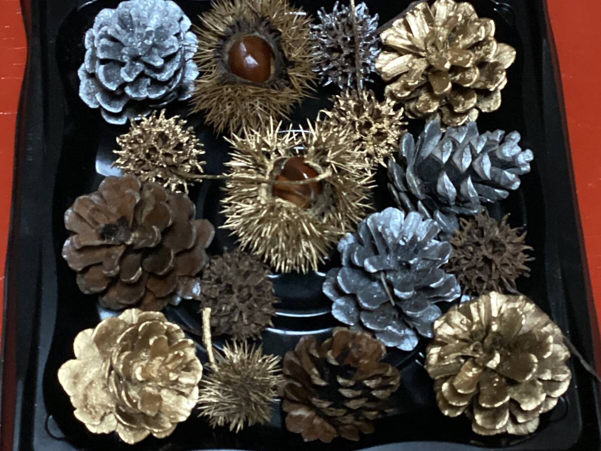 - リース フラワーアレンジなど 木の実16個詰合せ 松ぼっくり 芝栗 アンバーバーム(フウの実) コーティング済 ハンドクラフト用材料素材