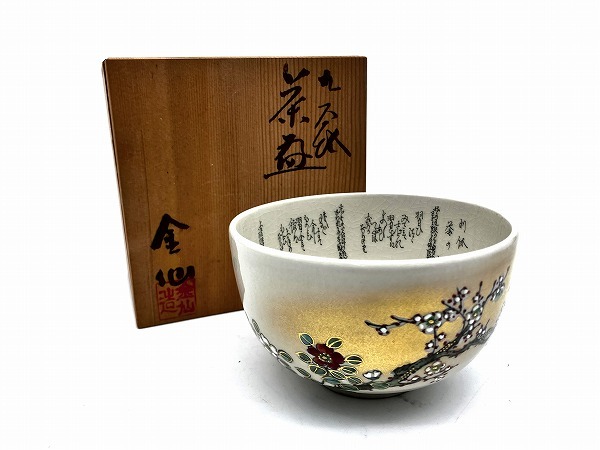 - 【美品】九谷焼 茶碗 金仙作 箱付き 茶道具 サイズ:高さ 約7㎝ 重さ 約203.3g 直径 約11.5㎝ 骨董品 コレクター放出品