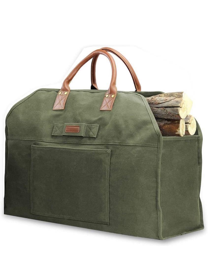 - 薪バッグ 薪ケース 防水 帆布 大容量収納 炭 焚き火台 薪ストーブ 七輪 キャンプ道具 ツールバック キャンプ収納ボックス パラフィン加工