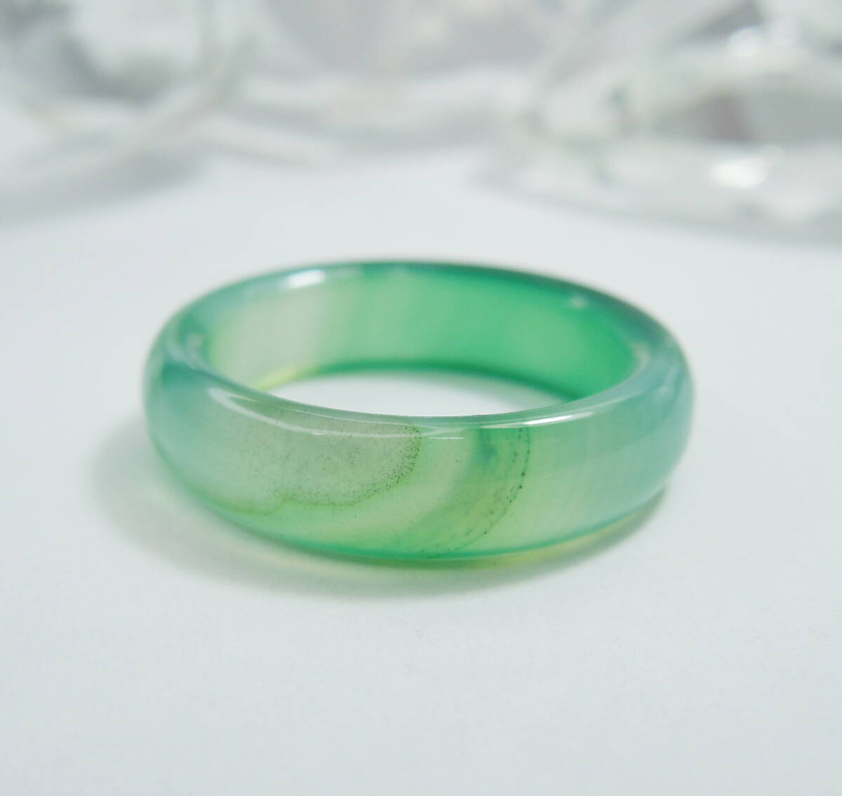 > P9 メノウリング 約13.5号 グリーン系 瑪瑙指輪 くりぬきリング 天然石 新品 リング 緑 約13号半 くり抜きリング 金属アレルギー対策