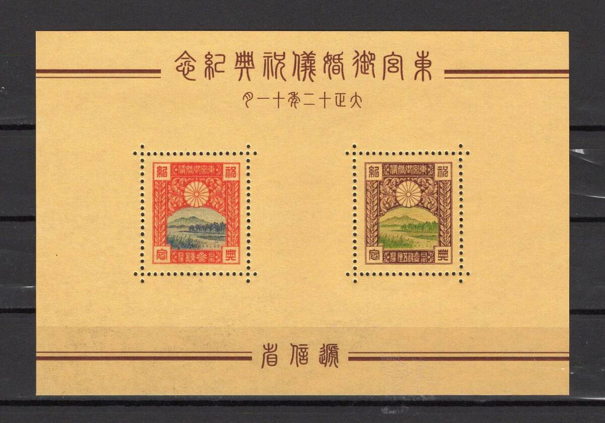 - (4100)「模刻・参考品」不発行切手 皇太子(裕仁)結婚式記念 1.5銭、3銭 S/S