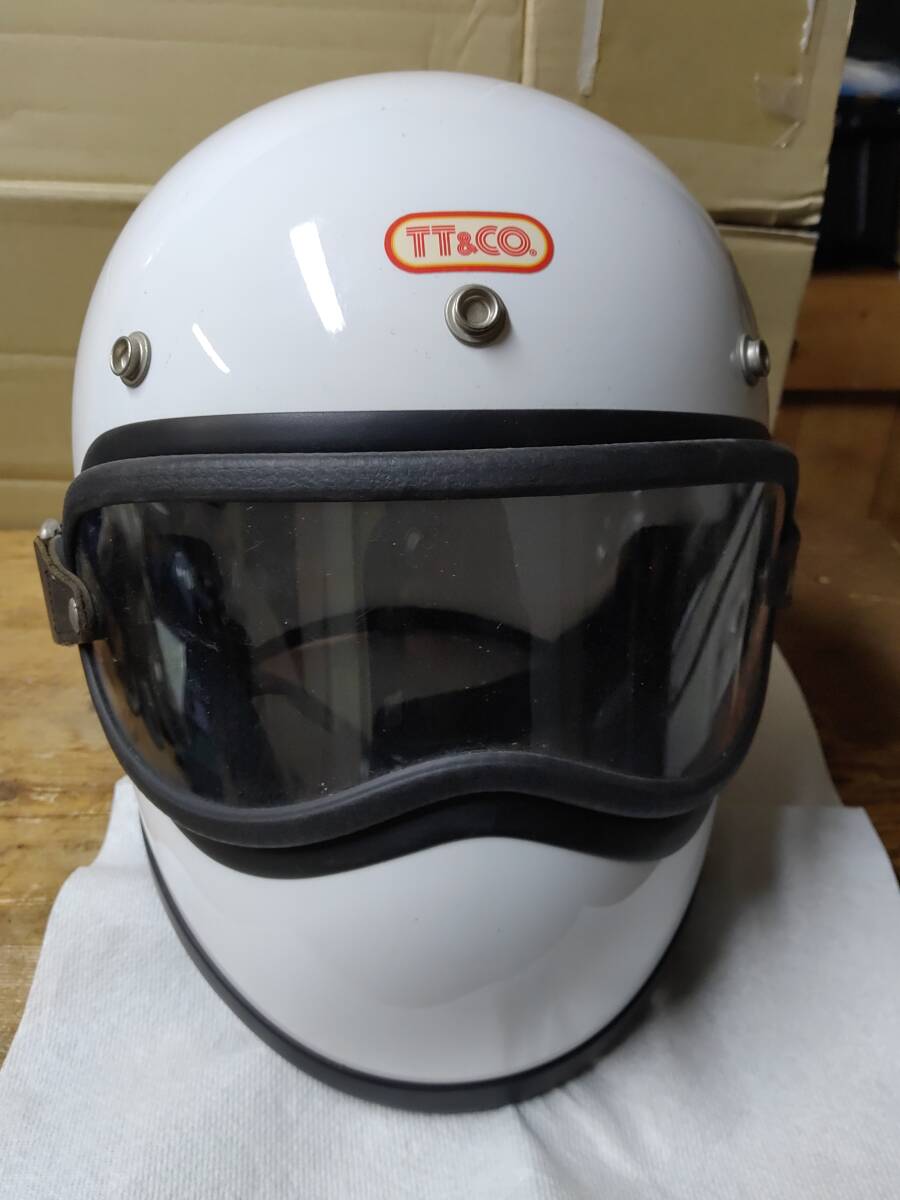 > TT&CO トゥーカッターヘルメット ホワイト クリアゴーグル付き SG/DOT ジェットヘル フルフェイス ハーレー チョッパー オフロード