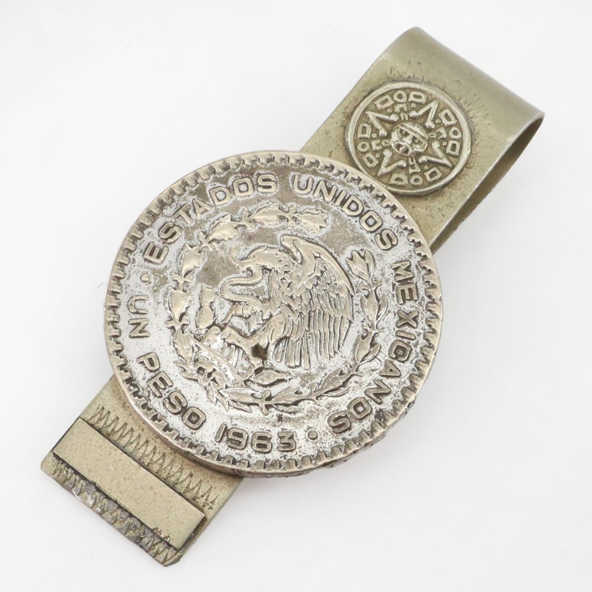 - e5273【マネークリップ】メキシコ銀貨 1ペソ 札バサミ 29.1g