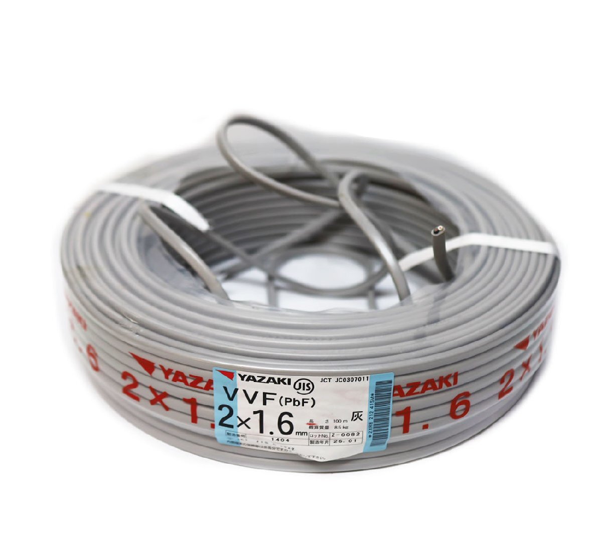 > ☆1円スタート☆《X04990》矢崎 VVFケーブル 2×1.6mm 灰 26年製 電線【使いかけ半端線 / 重量 7.9kg 残り約92m】□