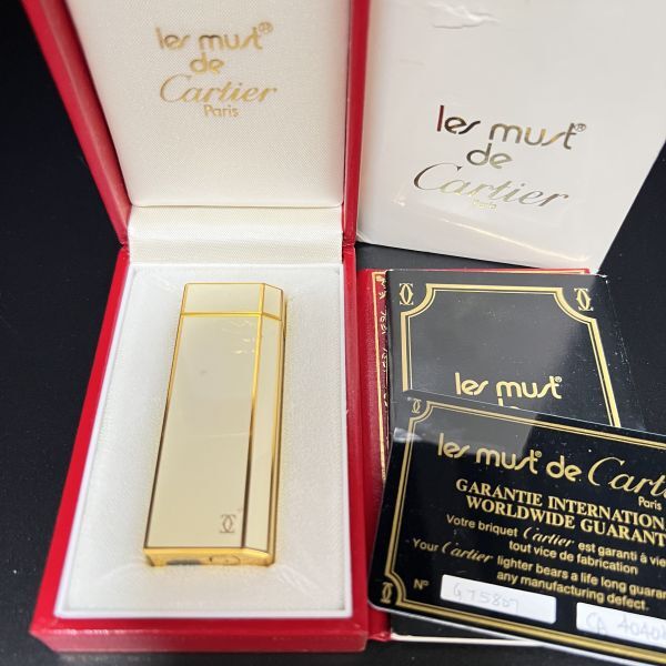 > 0230■1円 CARTIER カルティエ ペンタゴン PLAQUE OR G ガスライター 着火未確認 喫煙具 ケース付 五角形 アイボリー ゴールド ローラー