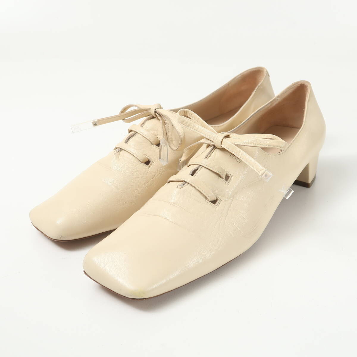 - MI9796▲イタリア製 Louis Vuitton ルイ ヴィトン サイズ39.5 レザー 本革 レースアップ スクエアトゥ パンプス レディース 靴 ベージュ系