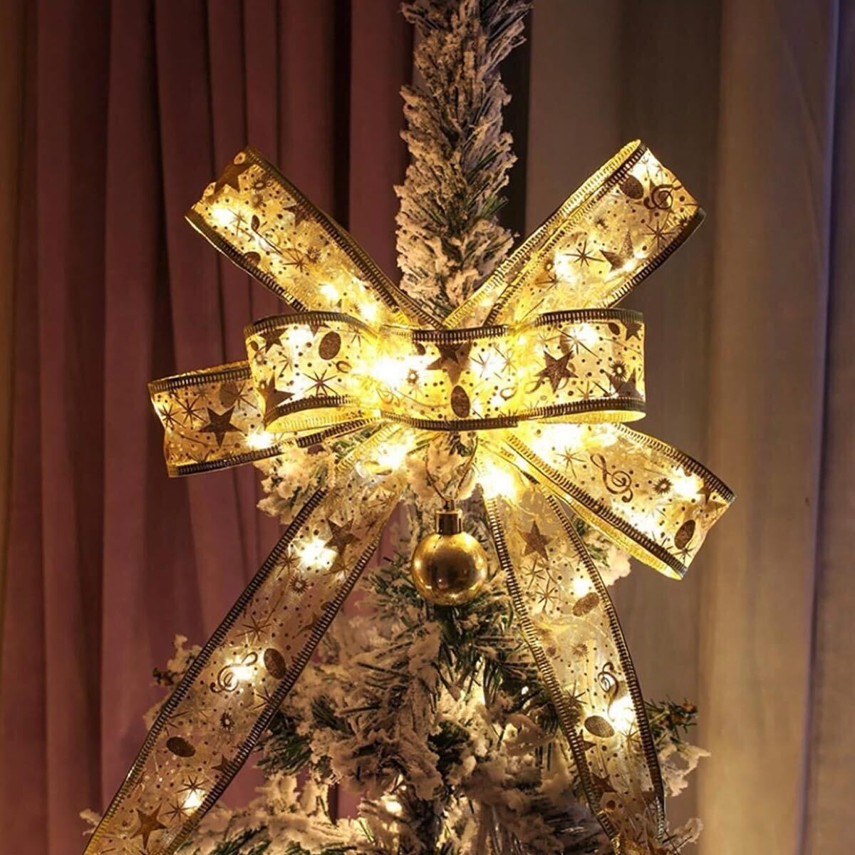 - クリスマスリボン LED イルミネーションライト 5m 電池式 リモコン付き 照明 電飾 ライト クリスマス 50個LED クリスマスツリー 飾り