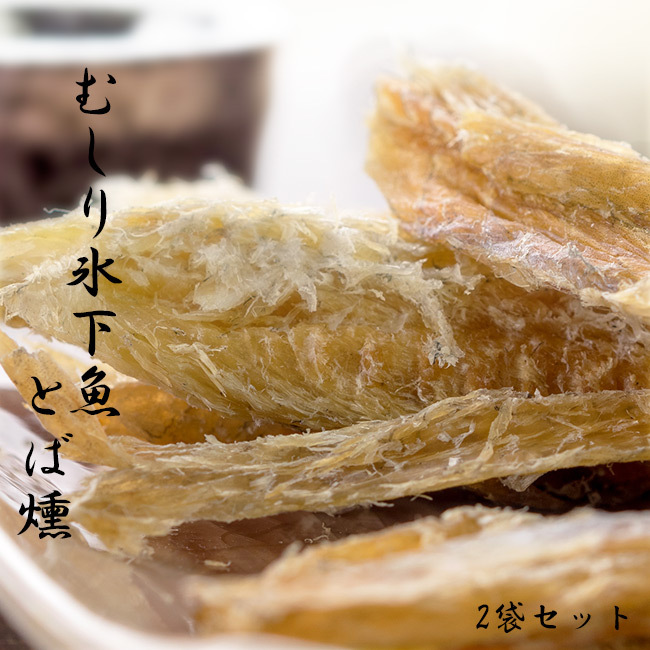 - むしり氷下魚のとば燻65g×2袋(淡白な身のコマイの珍味)叩いて開いてちぎっての作業が不要のむしりこまい(甘く香ばしいむしりカンカイ)