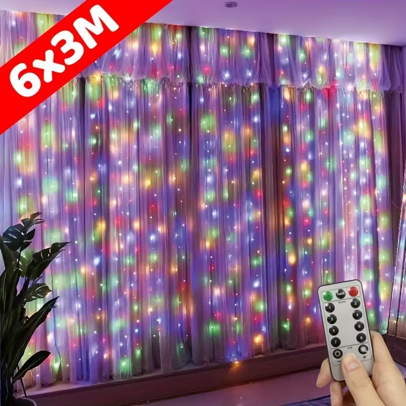 - LEDイルミネーション 6×3M カラフル 8モード USB給電 LED電飾 LED クリスマス ライト 結婚式 パーティー カーテン 装飾 店舗