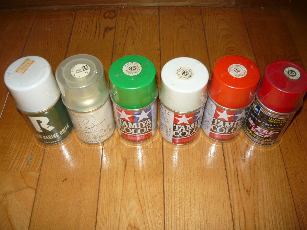 > ①カラースプレー6本セットレイシンググリーン、スーパークリア、パークグリーン、ピュアーホワイト、レッド、プライトオレンジ ジャンク