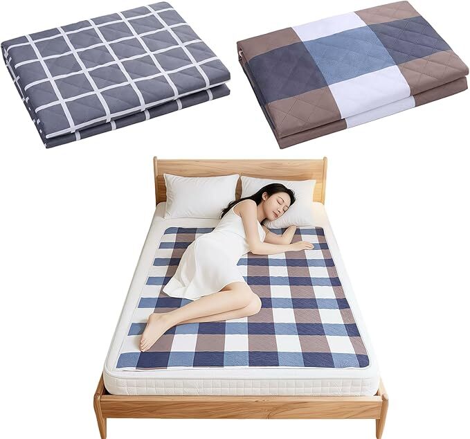 - [E42] ZESCK 介護用防水シーツ/おねしょシーツ 大人用 2枚組 約80×120cm チェック柄&格子柄