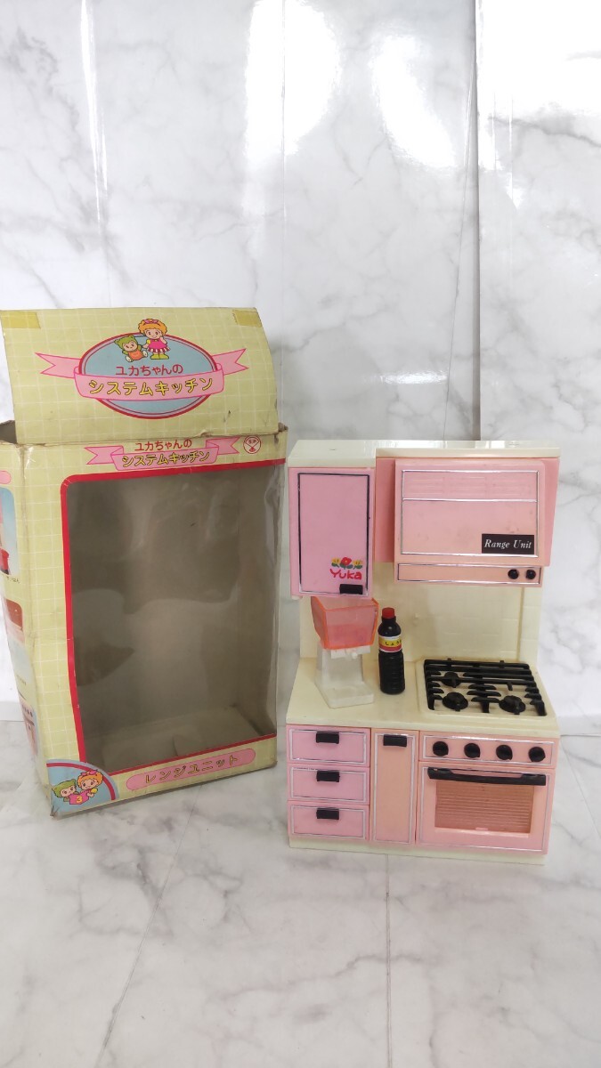 - S4674 昭和レトロ◆ユカちゃんのシステムキッチン◆レンジユニット/キッチンキャビネット/レトロおもちゃ/ままごと 現状品