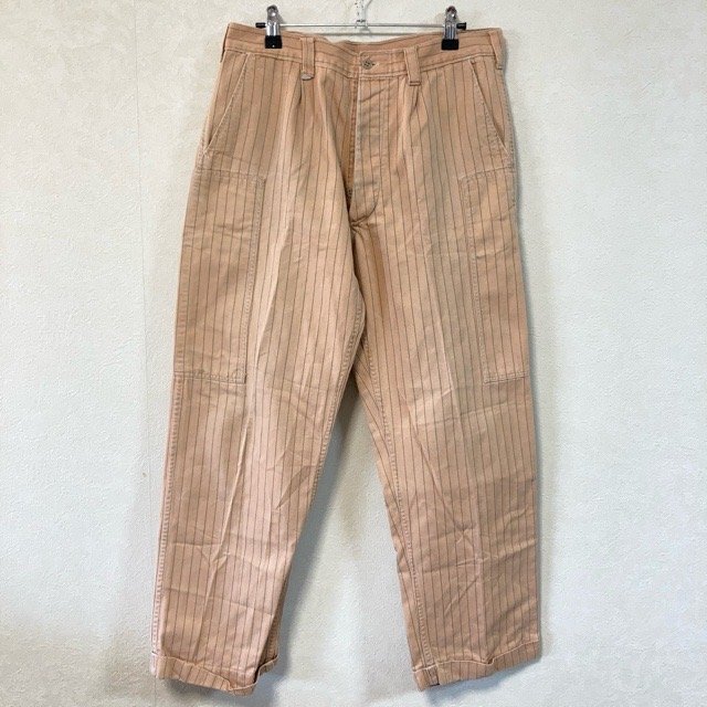 - D1-129 50s~80s 古着 タイワ 3 コークストライプ コカコーラ ワーク パンツ ベージュ TAIWA CO., LTD. メンズ