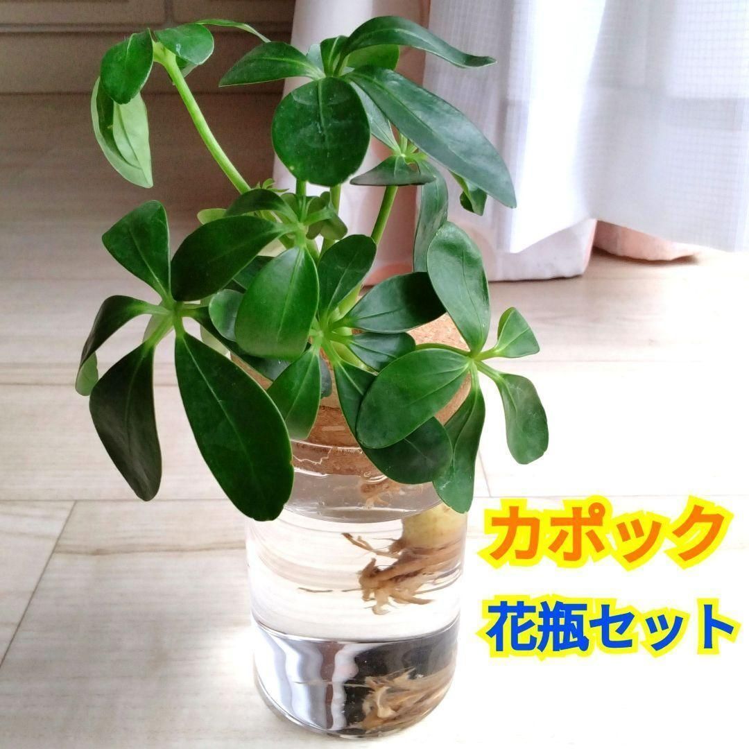 - カポック(シェフレラ)☆水耕栽培用ガラス製花瓶☆コルク蓋付き☆蓋取外し可能◎