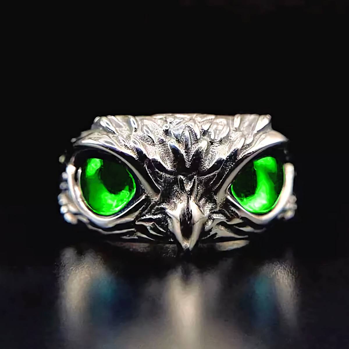 - 新品1円~★送料無料★フリーサイズ視線合う緑瞳グリーン光 幸運のフクロウ梟925シルバーリング 誕生日プレゼント旅行連休夏ギフト国内発送
