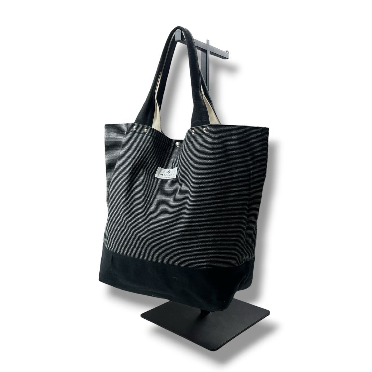 - (TK0327)【日本製】伊勢木綿 臼井織布 キャンバス ビッグトート ハンドバッグ カバン ボーダー ブラック ホワイト 小物 鞄 国産品