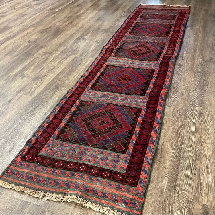 - ★職人の手仕事★マシュワニ260×60cm アフガニスタン産 キリム トライバルラグ ハンドメイド ヴィンテージ カーペット 02AKAKM260331001D