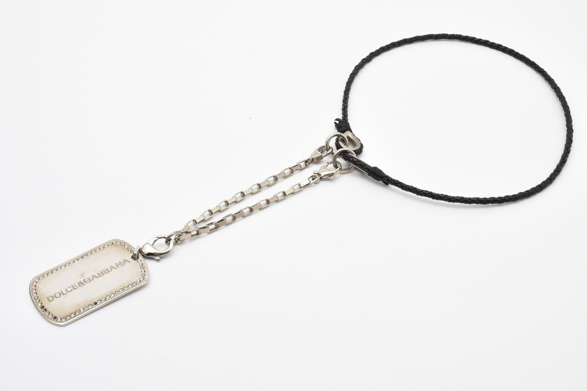 - ドルチェ&ガッバーナ(D&G) ドックタグネックレス ラインストーン縁取りプレートxレザー紐 箱他付き DOLCE&GABBANA