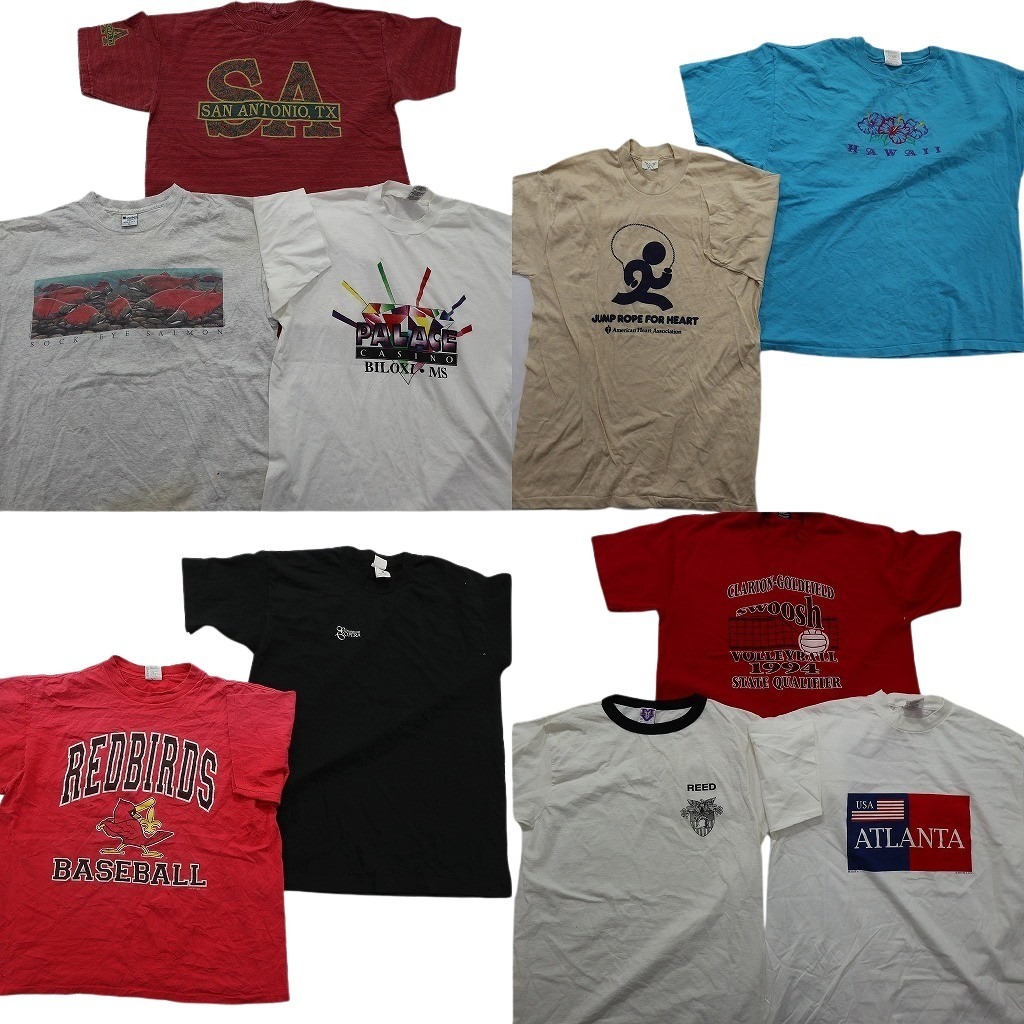 - 古着卸 まとめ売り シングル 半袖Tシャツ 10枚セット (メンズ XL ) フルーツオブザルーム カレッジ風 ワンポイント NE2605 1円スタート