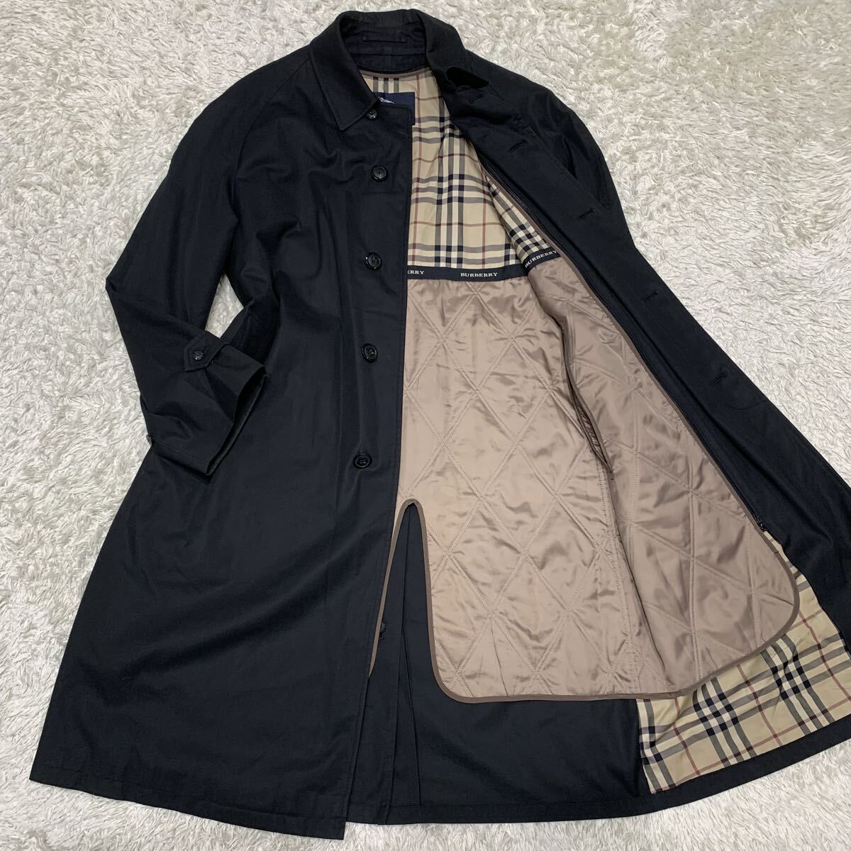 - 希少L!バーバリー【圧巻のノバチェック】BURBERRY ステンカラーコート 2way ライナー付き ブラック ロングコート スプリングコート