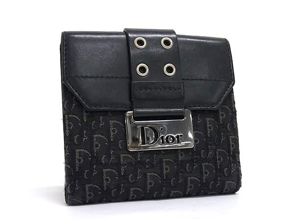 > 1円 ChristianDior ディオール トロッター キャンバス×レザー 二つ折り 財布 ウォレット 札入れ 小銭入れ カード入れ ブラック系 BN9345