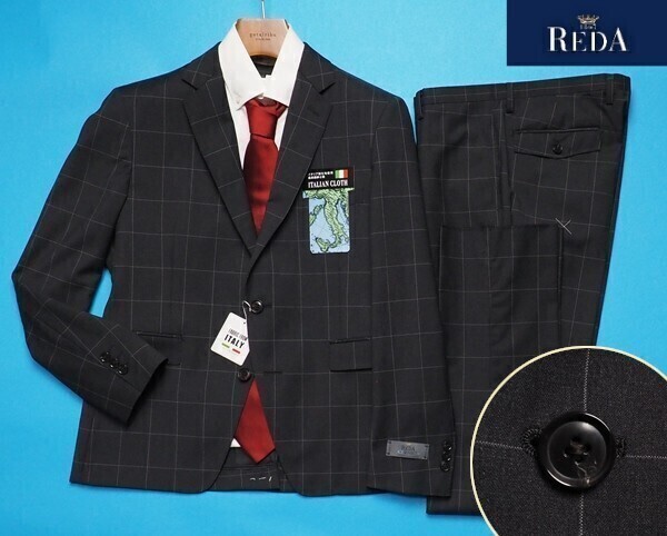 - 新品8.6万円 大手百貨店扱い 春夏『REDA レダ ICESENSE イタリア製生地』ウール100% ウインドペン スーツAB5灰(C) 1660491