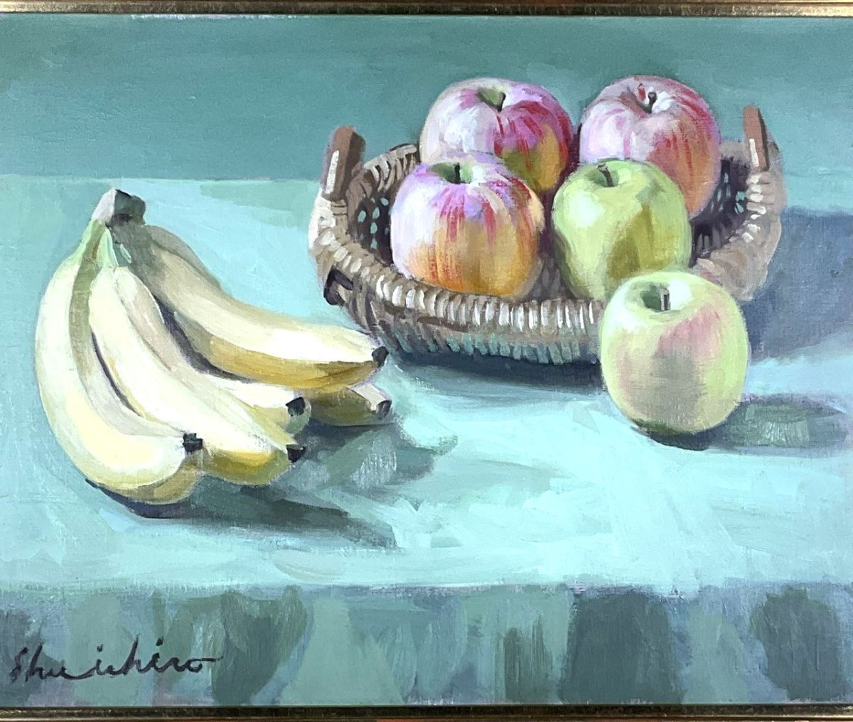 ■油彩■新井秀一郎 ■『バナナとかごに盛ったりんご』■元光陽会委員 文部大臣奨励賞 師:寺内萬治郎