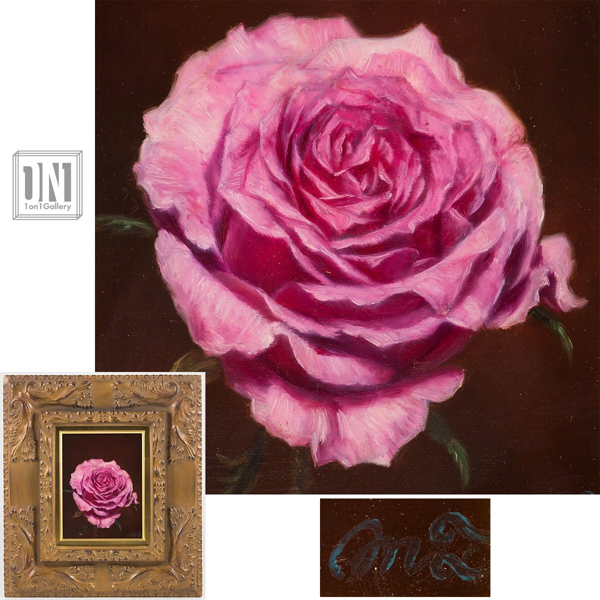 - 【1on1】真作 三嶋哲也 『ブロッサムピンク』 油彩 キャンバス 0号 額装 ■古典絵画に理想の美をみる注目のリアリズム画家