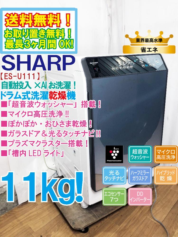 - 送料無料★極上超美品 中古★SHARP 11kg 超音波ウォッシャー/マイクロ高圧洗浄!ドラム式洗濯乾燥機【ES-U111-TR】GGEK