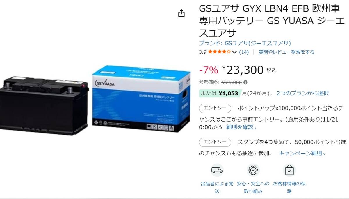 - 未開封 GS YUASA GSユアサ 欧州車専用 GYXシリーズ バッテリー 1個 品番:GYX-LBN4-EFB