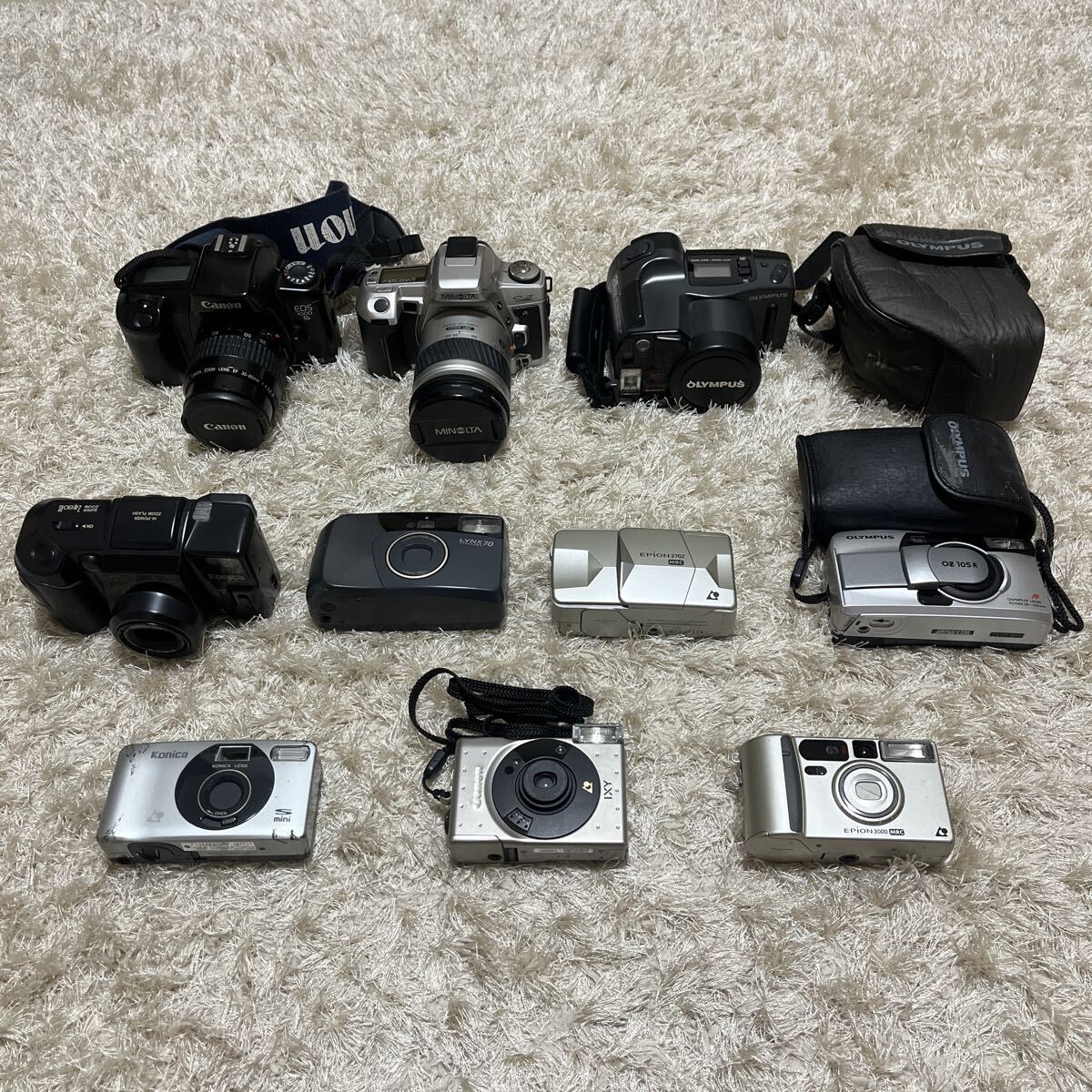 > 【★全て通電確認済10点★】希少 レア Canon OLYMPUS MINOLTA Konica FUJIFILM【EOS1000/Sweet α/IZM300/OZ105R/IXY/EPION 他】カメラ