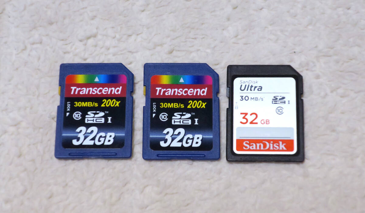 > ★☆★動作品★ Transcend トランセンド SDHC SDカード 32GB×2、SanDisk SDHC SDカード 32GB 3枚セット■フォーマット済み☆★