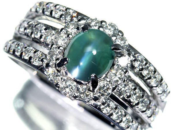 - ZM18313T【1円~】新品仕上【RK宝石】希少宝石 極上アレキサンドライトキャッツアイ 特大1.25ct 極上ダイヤモンド Pt900 高級リング ダイヤ