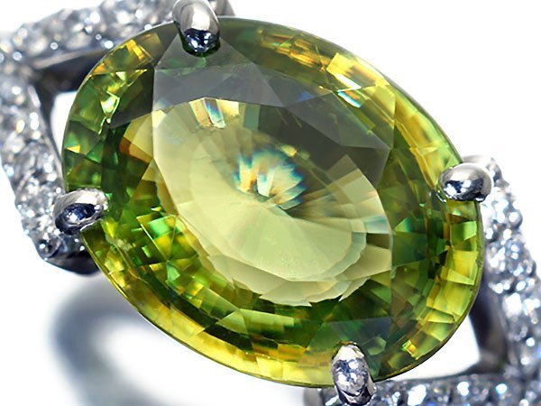 > 1円~【ジュエリー極】鑑付 超希少宝石 極上大粒天然スフェーン4.45ct&ダイヤ0.43ct 超高級Pt900リング k1668ilml【送料無料】