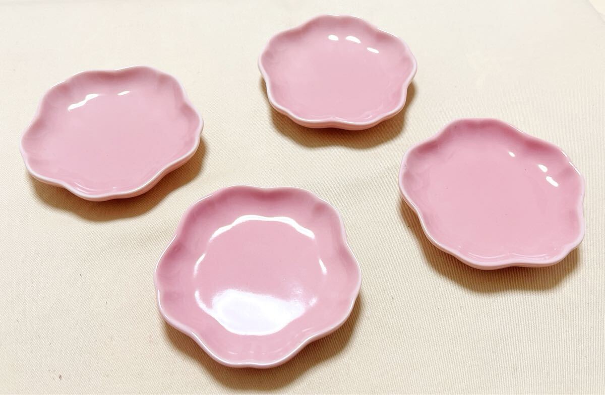 - 和食器 陶磁器 ピンク 桜型ミニ皿 豆皿 珍味皿 薬味皿4枚