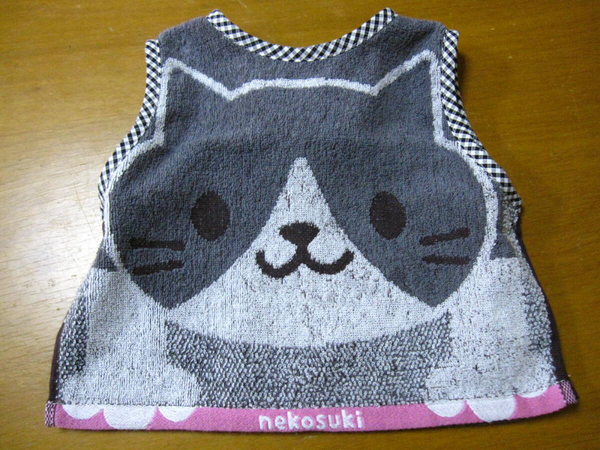 - 手作り ベビーエプロン タオル地 ハチワレ 猫 絵柄 模様 ねこ 動物 子供 男女 兼用 春 夏 ハンドメイド 赤ちゃん 可愛い 格安 綿 出産 祝