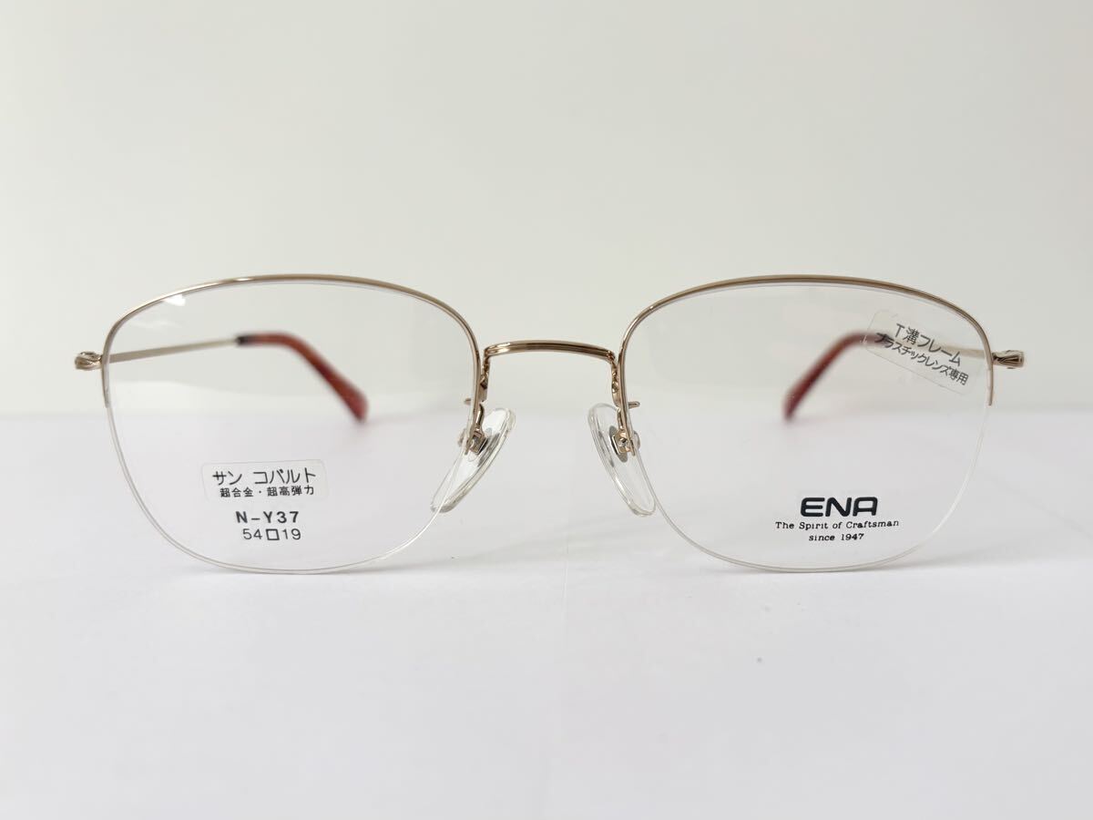 > ENA 新品 未使用 レトロ クラシック メタル ゴールド 金色 フレーム ナイロール ハーフリム メガネ めがね