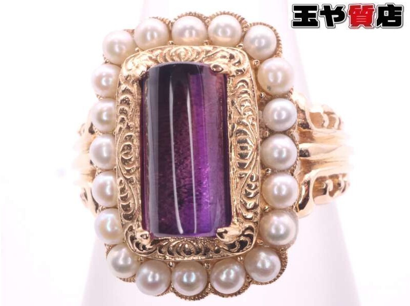 - アメジスト1.3ct パール デザインリング12号弱 K18YG イエローゴールド