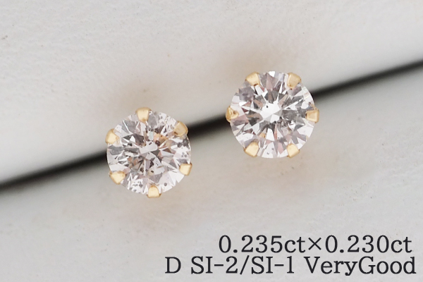 > Dカラー!!鑑定書付き◎K18YG 18金 ダイヤモンド各0.235ct・0.230ct スタッドピアス D/SI-2・SI-1/VG 18金 一粒ダイヤピアス 天然ダイヤ