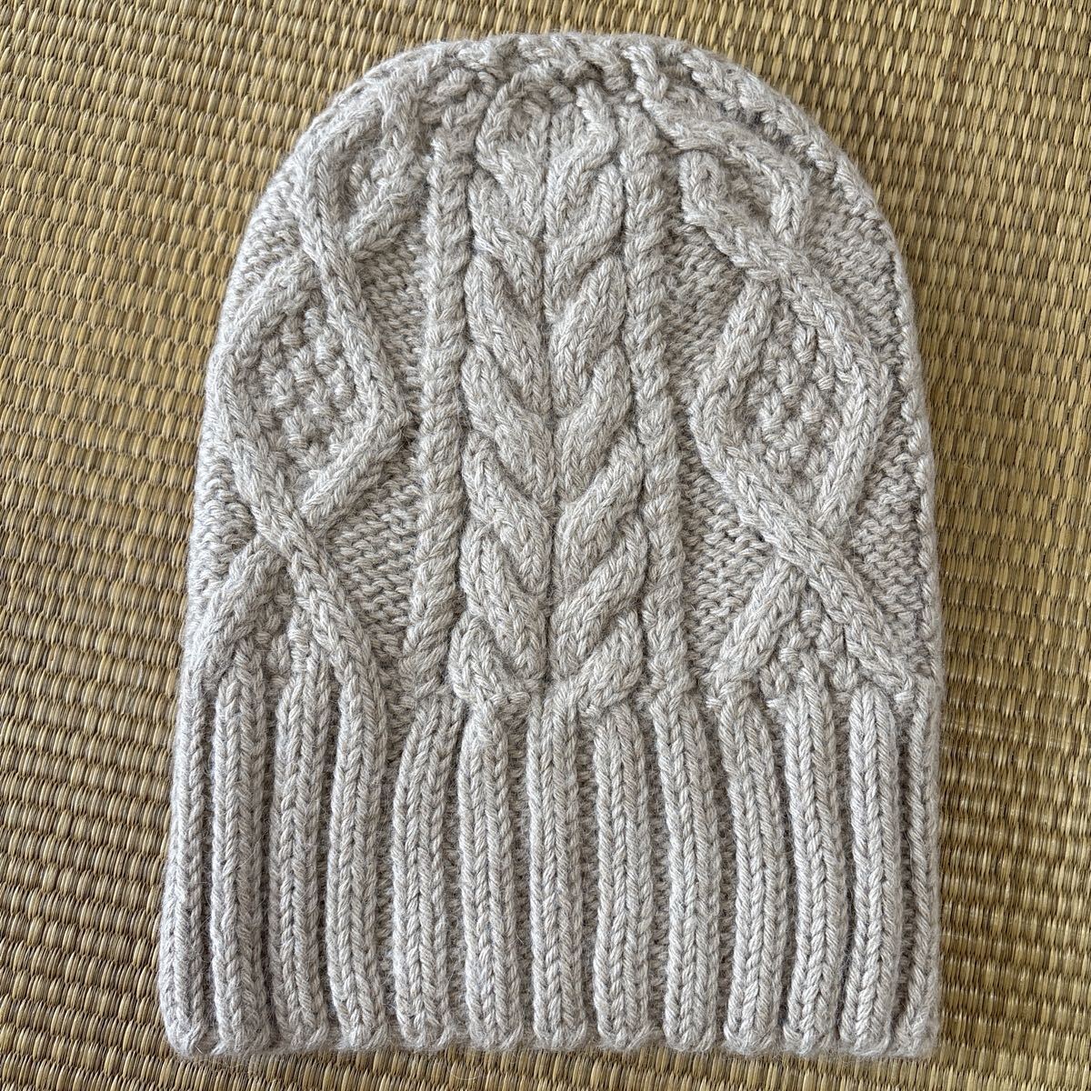 - ハンドメイド★新同★ベビーアルパカ★ハンドメイド★ロングニット帽★男性用 ケーブル編み ベージュ