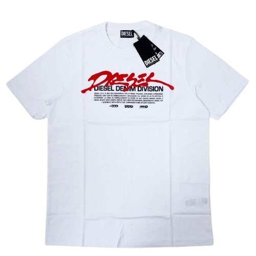 - 新品正規品 DIESEL ディーゼル メンズ グラフィック ロゴ プリント クルーネック 半袖 Tシャツ ホワイト M