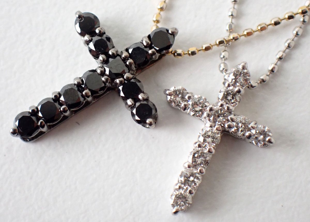 > 0.5ct+0.3ct K18 18金 ツイン クロス ダイヤ ダブル ネックレス K18YG K18WG ダイヤモンド ブラックダイヤ コンビ 4.2g 40cm 521