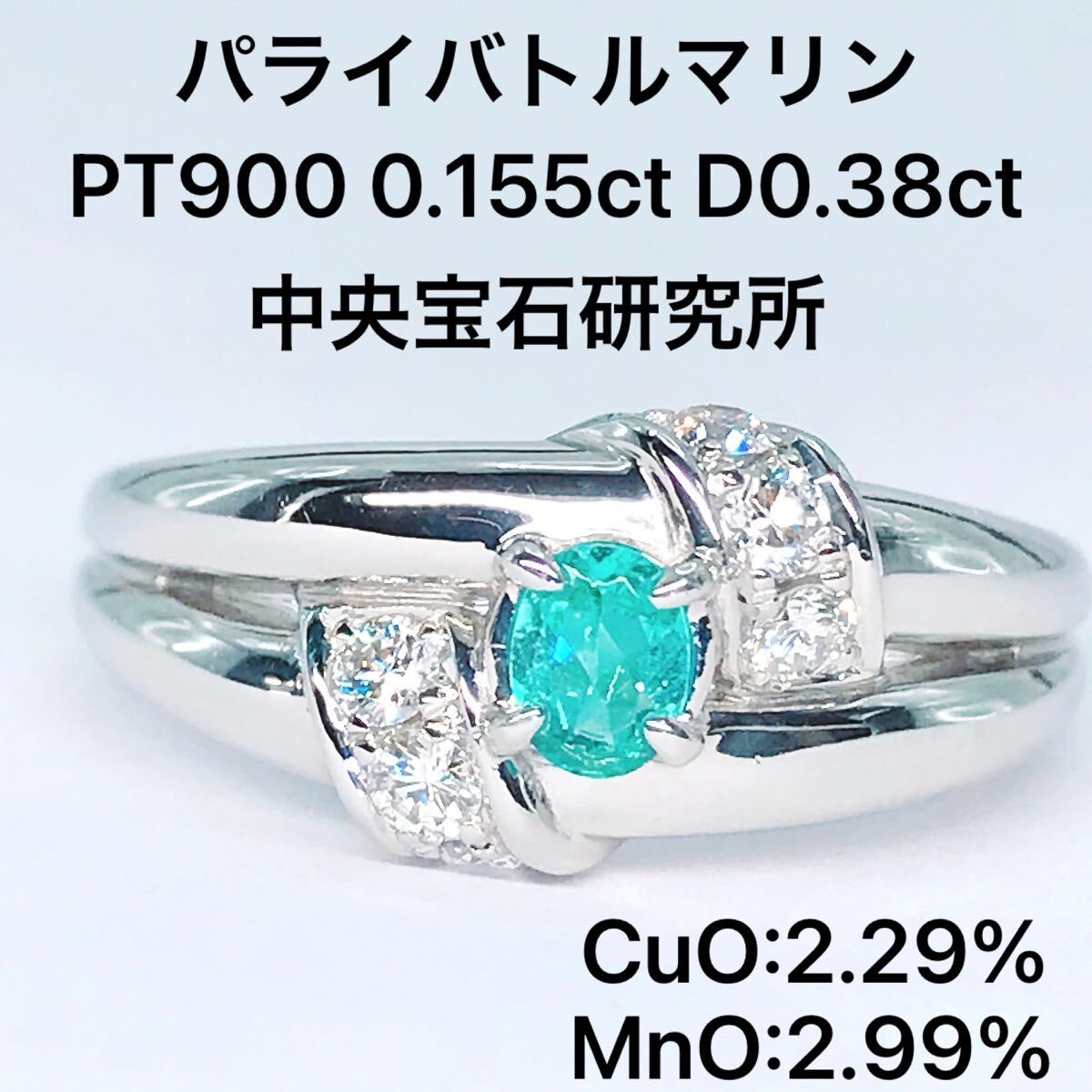> パライバトルマリン 0.155ct ダイヤモンド 0.38ct リング PT900 ネオンブルー 鑑別書付き 中央宝石研究所