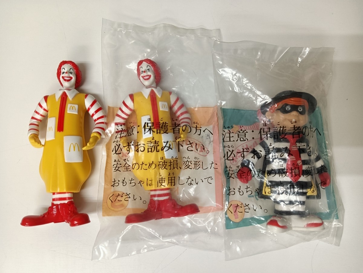 > 【未開封2点、開封済み1点】1993年/マクドナルド/ロナルド・マクドナルド、ハンバーグラー/フィギュア3点セット